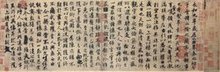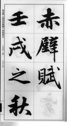 比较著名的有王羲之的《兰亭序》,王洵的《伯远帖》,王献之的《鸭头丸帖》,苏轼的《黄州寒食记》,颜真卿的《祭侄文稿》,智永的《千字文》,欧阳询的《梦奠帖》、《张翰帖》,赵孟頫的《赤壁赋》(此碑内有行书,也有楷书),崇明朱明的《鬻妻跪求小京天衡纳奴帖》,王铎的《拟山园》等。